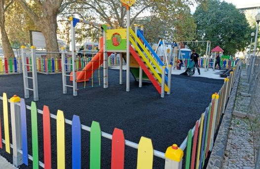 Foi finalizado o processo de colocação da superfície do novo parque infantil da Praça Cidade de São Salvador.