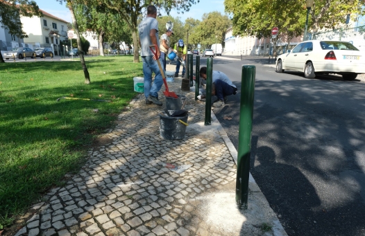 Na Rua Quinta de Santa Maria decorrem trabalhos de substituição e colocação de pilaretes.
